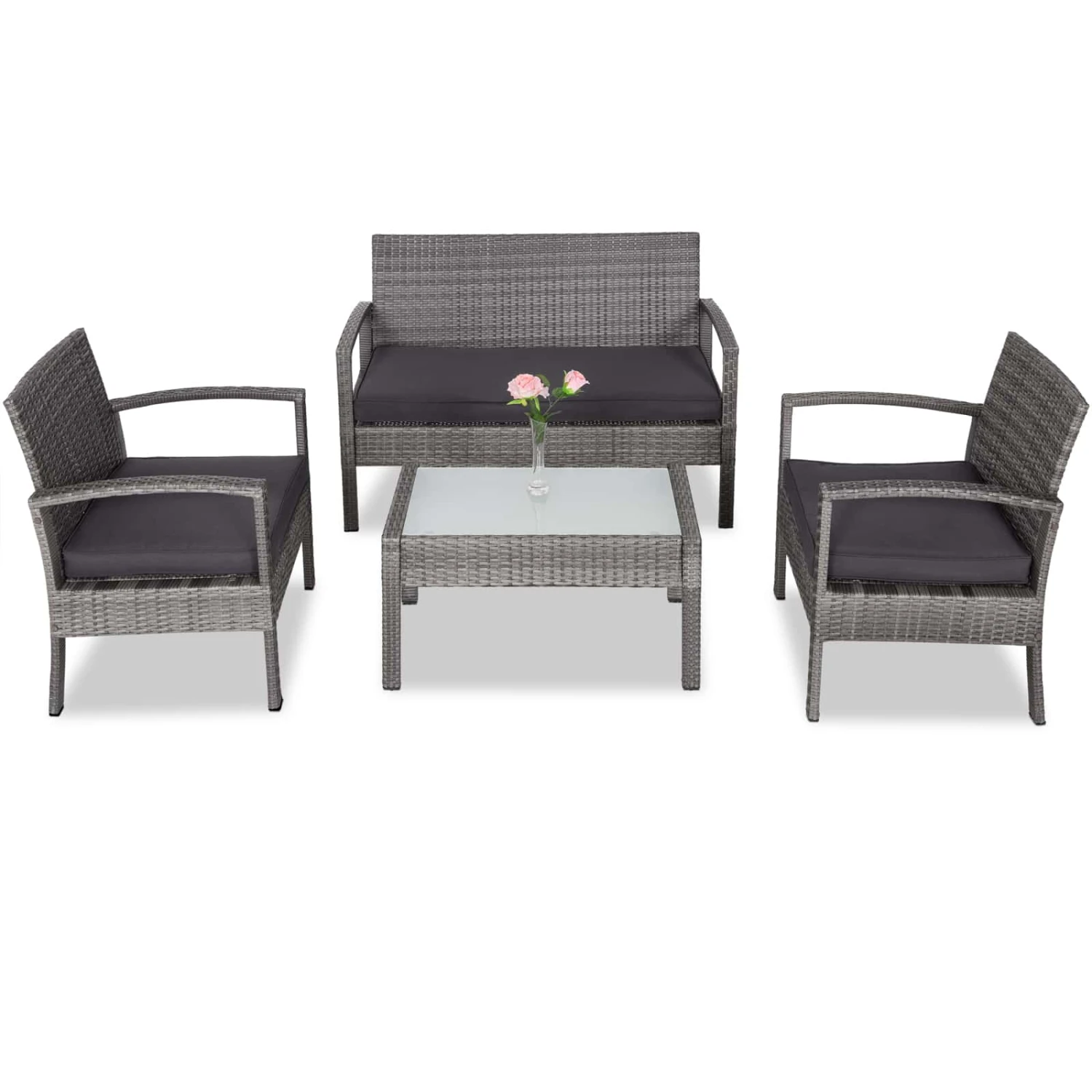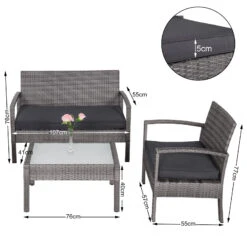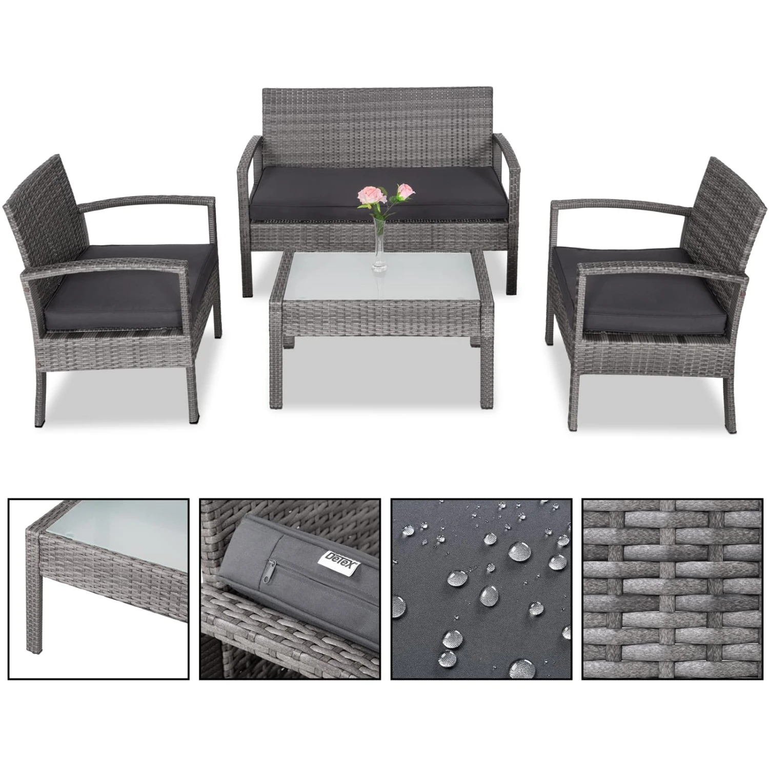 Ob Garten, Terrasse oder Balkon – machen Sie es sich bequem in dieser eleganten Sitzgruppe für bis zu 4 Personen.