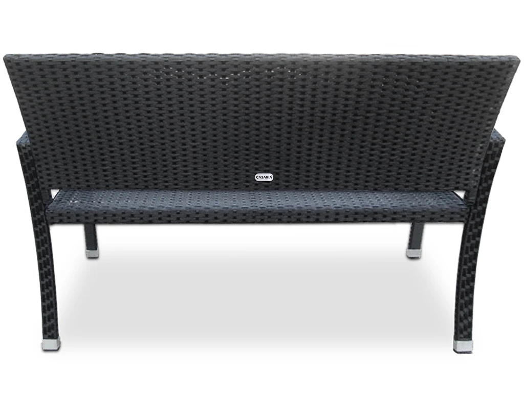 Diese Polyrattan Bank bietet Platz fĂŒr bis zu 2 Personen und ist ideal fĂŒr den Balkon oder die Terrasse geeignet. Dank der RĂŒckenlehne und den Armlehnen lĂ€sst es sich bequem sitzen.