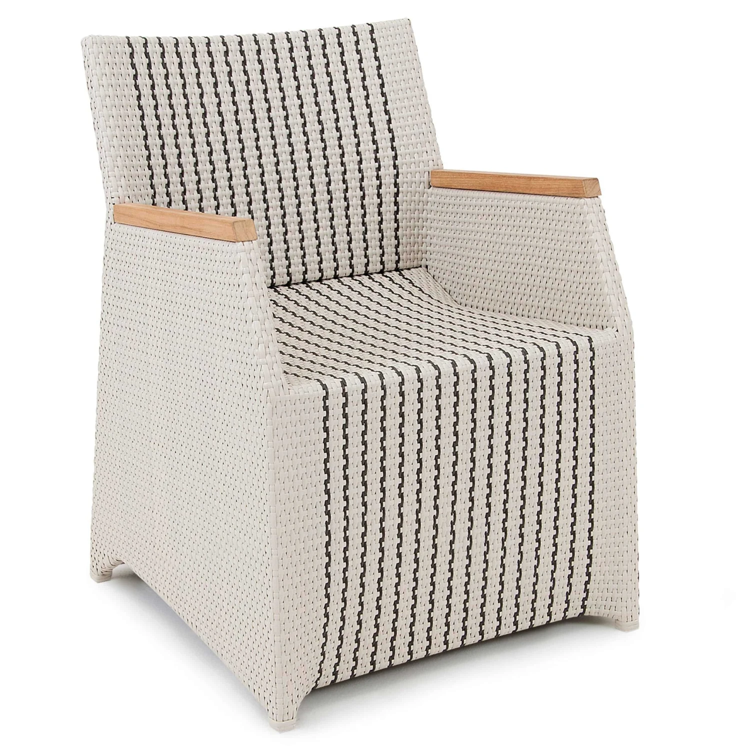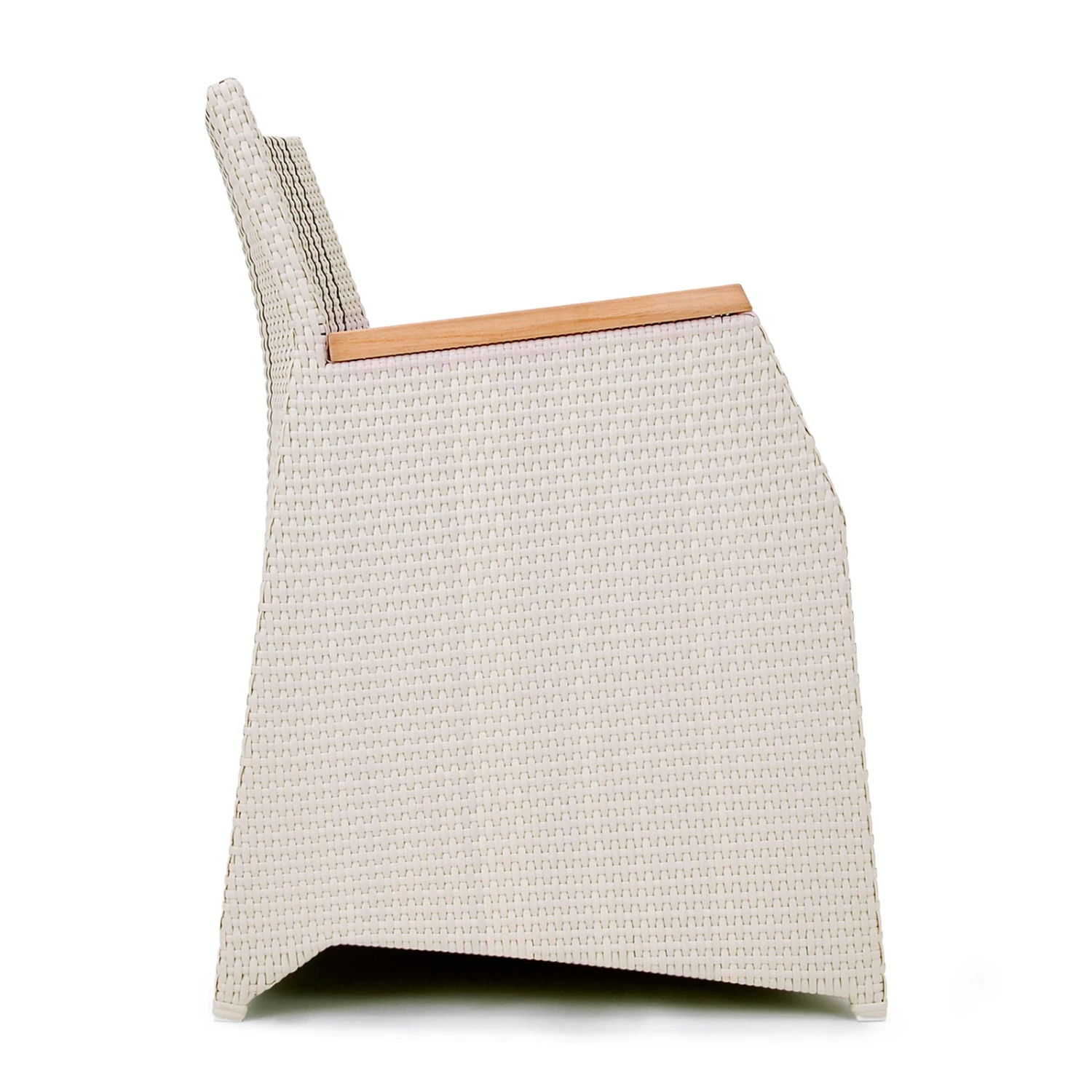 Die Armlehnen sind aus hochwertigem Teakholz gefertigt und runden die Gesamterscheinung des Gartensessels optimal ab.