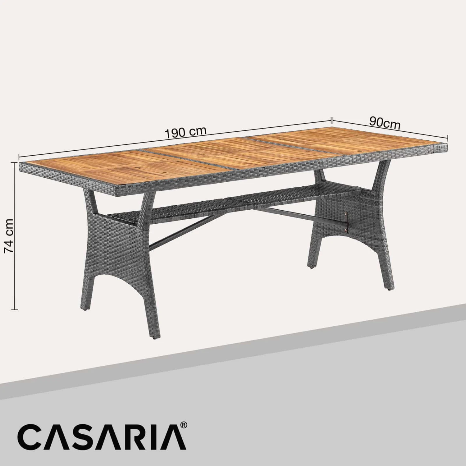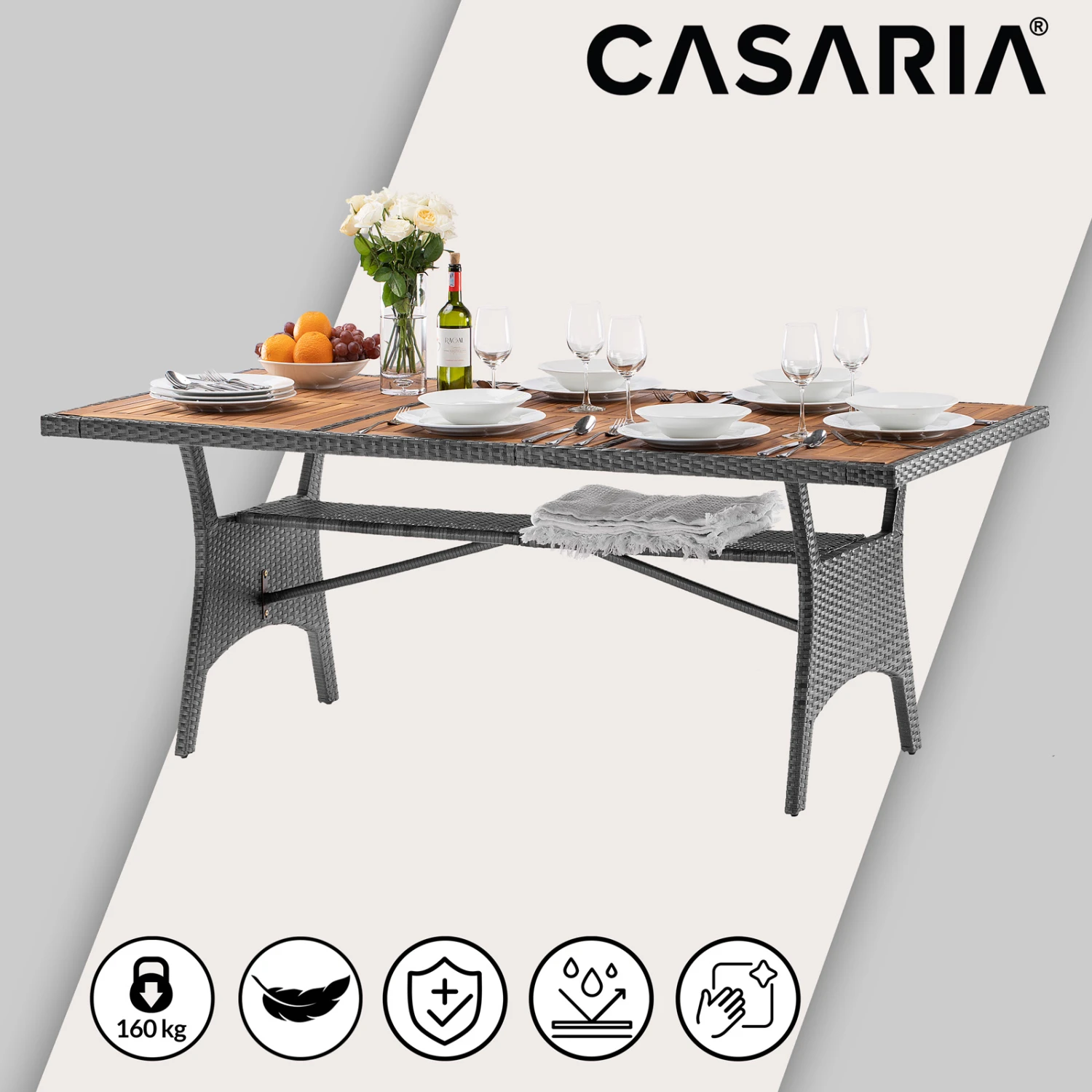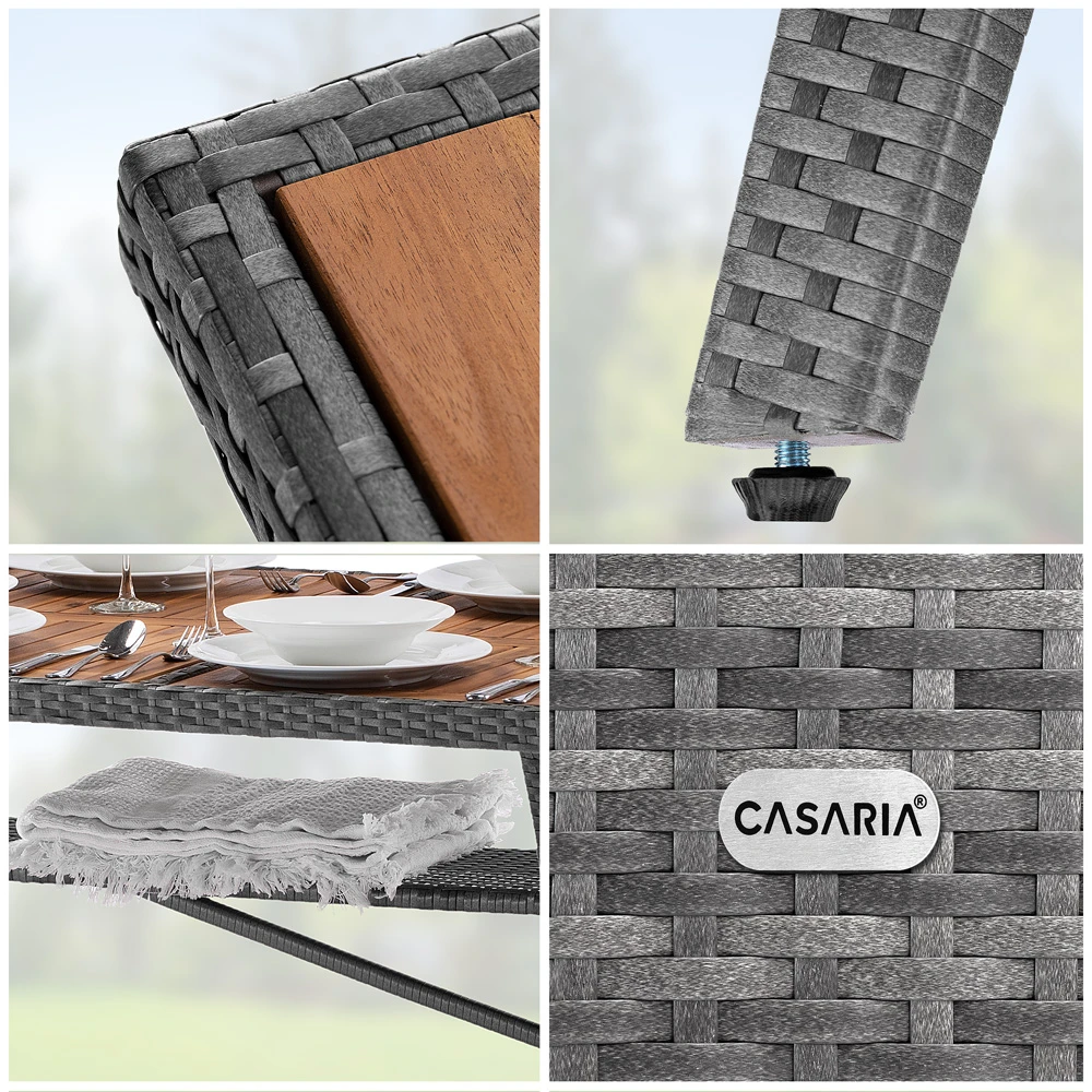 Der Gartentisch von Casaria® für bis zu 8 Personen ist die ideale Ergänzung für Ihr Garten, Terrasse oder Wintergarten. Die Tischplatten aus geöltem Akazienholz und die natürliche, elegante Holzmaserung ist das Highlight bei jeder Gartenparty. Das Polyrattan ist wetterfest, UV-lichtbeständig, schmutzabweisend und leicht zu reinigen.