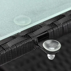Das pulverbeschichtete Stahlgestell des Tisches und die zusätzlich angebrachten Querstreben hält auch starken Beanspruchungen stand. Das hochwertige Rattan ist wetterfest, UV-lichtbeständig und einfach zu reinigen.