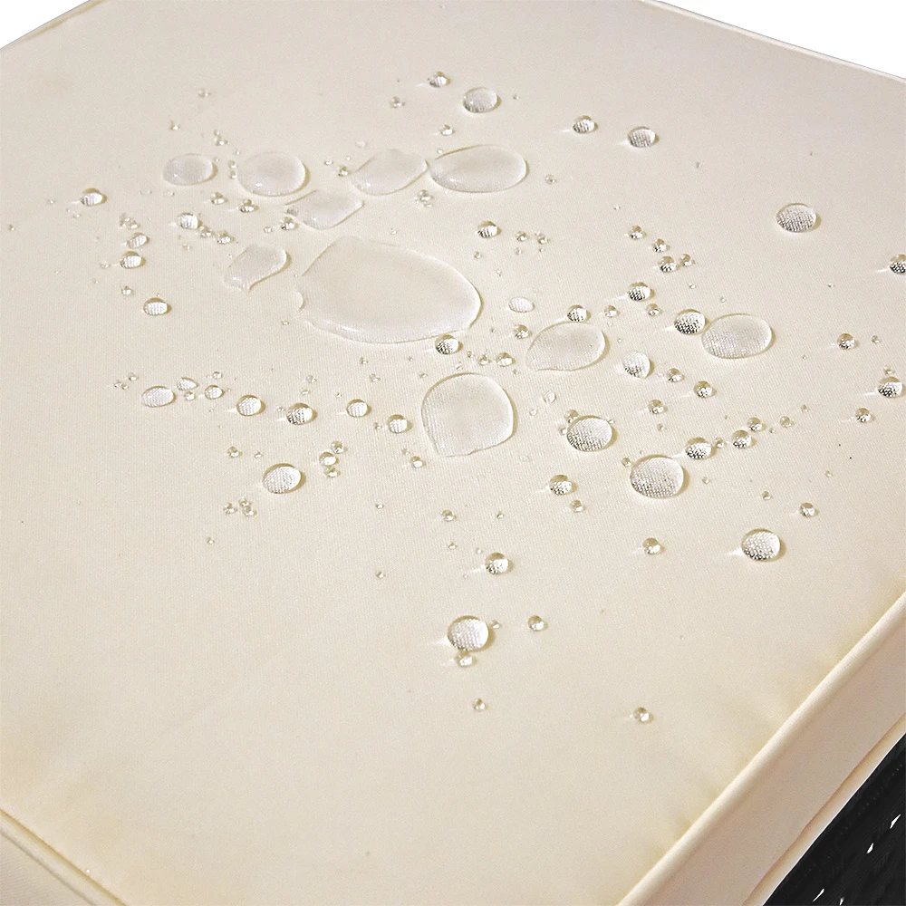 Die 15 cm dicken Rückenkissen und 7 cm dicken Sitzauflagen sind doppelt gekettelt und sorgen für den nötigen Sitzkomfort. Die abnehmbaren Bezüge mit Reißverschluss sind wasserabweisend; dadurch werden Flüssigkeiten nicht sofort aufgesaugt und können leicht und rückstandslos abgetupft werden.