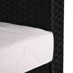 Das Polyrattan wurde extra für Gartenmöbel entwickelt. Es ist UV-lichtbeständig, schmutzabweisend und einfach zu reinigen. Die beiden Sitzbänke auf solidem, pulverbeschichtetem Stahlrahmen halten auch starken Beanspruchungen stand.