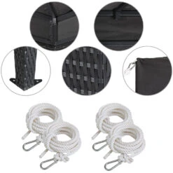 Die soliden Dachstreben, die 4 mit ErdnĂ€geln verankerbaren FĂŒĂe (zum Aufbau des Pavillon auf RasenflĂ€chen) und die robuste Metallkonstruktion geben dem Gartenzelt einen stabilen Halt und die richtige Standfestigkeit. Mit dem ansprechenden Kunststoffgeflecht passt der Pavillon optimal zu Ihren anderen Gartenmöbeln.