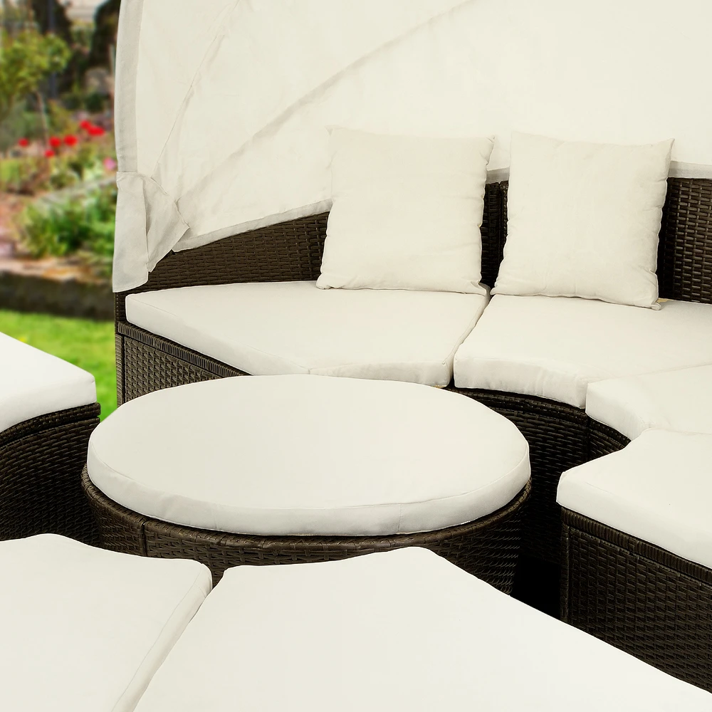 Polyrattan Sonneninsel Braun/Creme Ø230cm