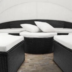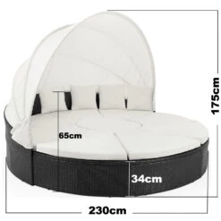 Polyrattan Sonneninsel Schwarz/Creme Ø230cm