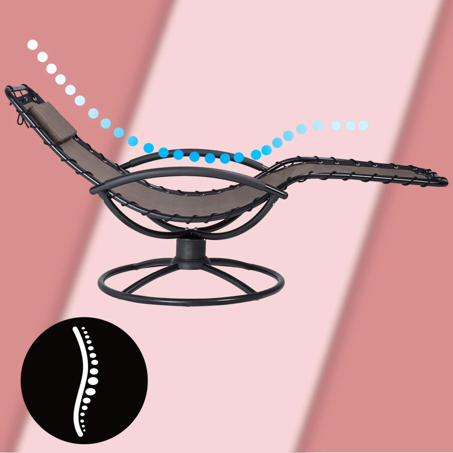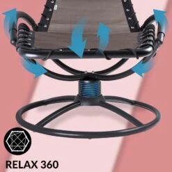 Die spezielle Konstruktion ermöglicht dank perfekt balancierter Spiralfeder sanfte und entspannende Schwingbewegungen in alle Richtungen. Das besonders bequeme Kissen an der Kopfstütze ist abnehmbar. Kissen und Liege sind luftdurchlässig und schnell trocknend und Sie erleben so auch im Sommer eine frische und angenehme Zeit auf der Relaxliege.