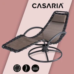 Der moderne Relaxsessel von Casaria sorgt dank seiner ergonomischen Form für höchste Entspannung und ermöglicht eine besonders angenehme Liegeposition. Die stabile Konstruktion aus pulverbeschichtetem Stahl und hochwertigem Polyester-Mesh sorgt für eine lange Lebensdauer und viele wohltuende Momente.