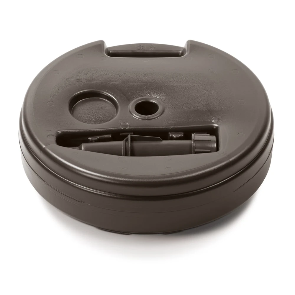 Der wetterfeste Schirmständer in Rattan-Optik kann mit Wasser, Sand oder Kies befüllt werden. Damit bietet er Ihrem Sonnenschirm perfekten Halt.