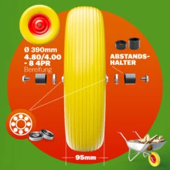 Sie sind es leid, andauernd Ihr Schubkarrenrad aufzupumpen oder gar austauschen zu mĂĽssen? Kein Problem mit diesem pannensicheren PU – Rad mit robuster Stahlfelge und Kugellager fĂĽr leichtes Fahren.