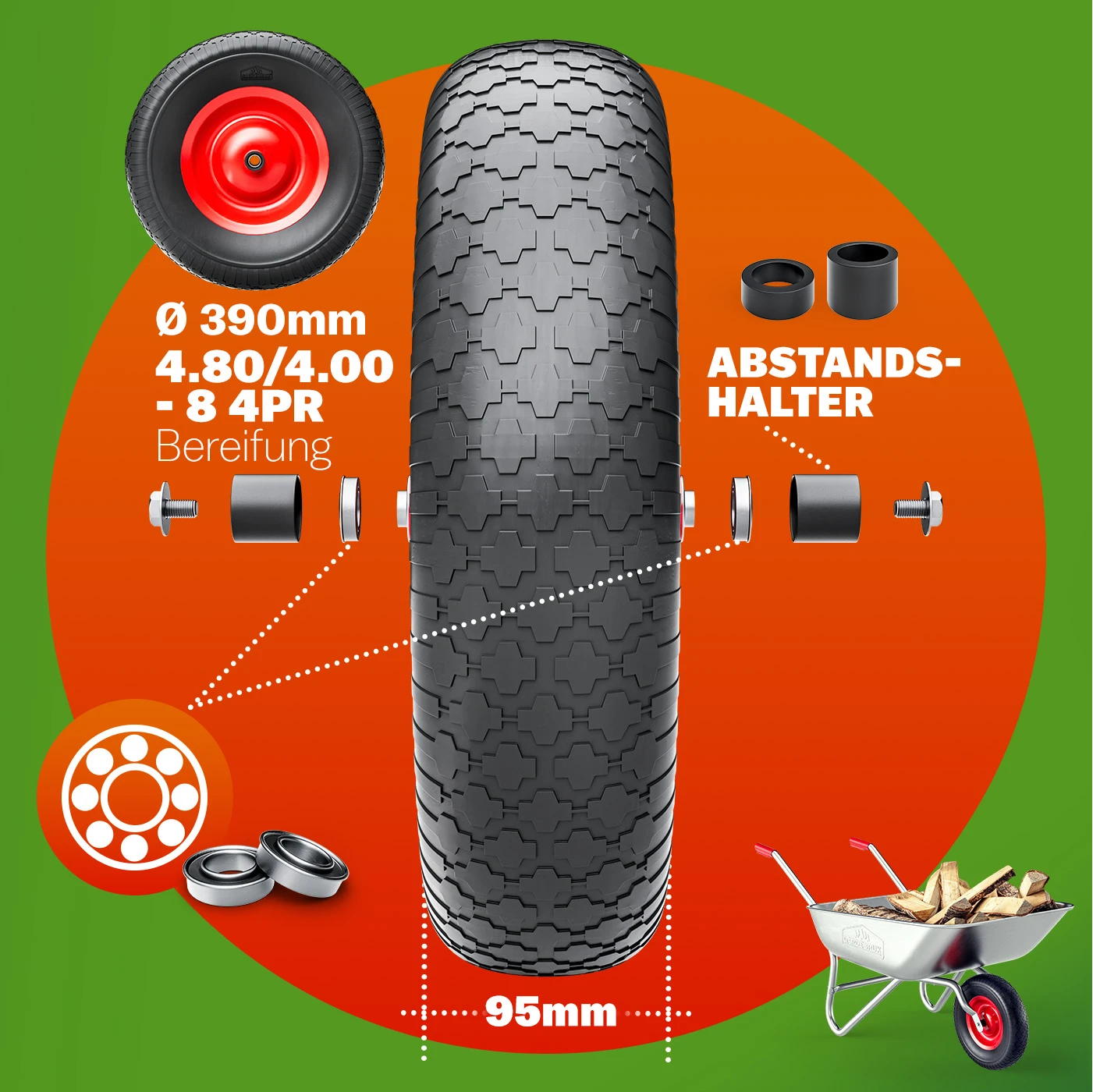 - 1 x Schubkarrenrad mit Stahlfelge und Kugellager inkl. Achse