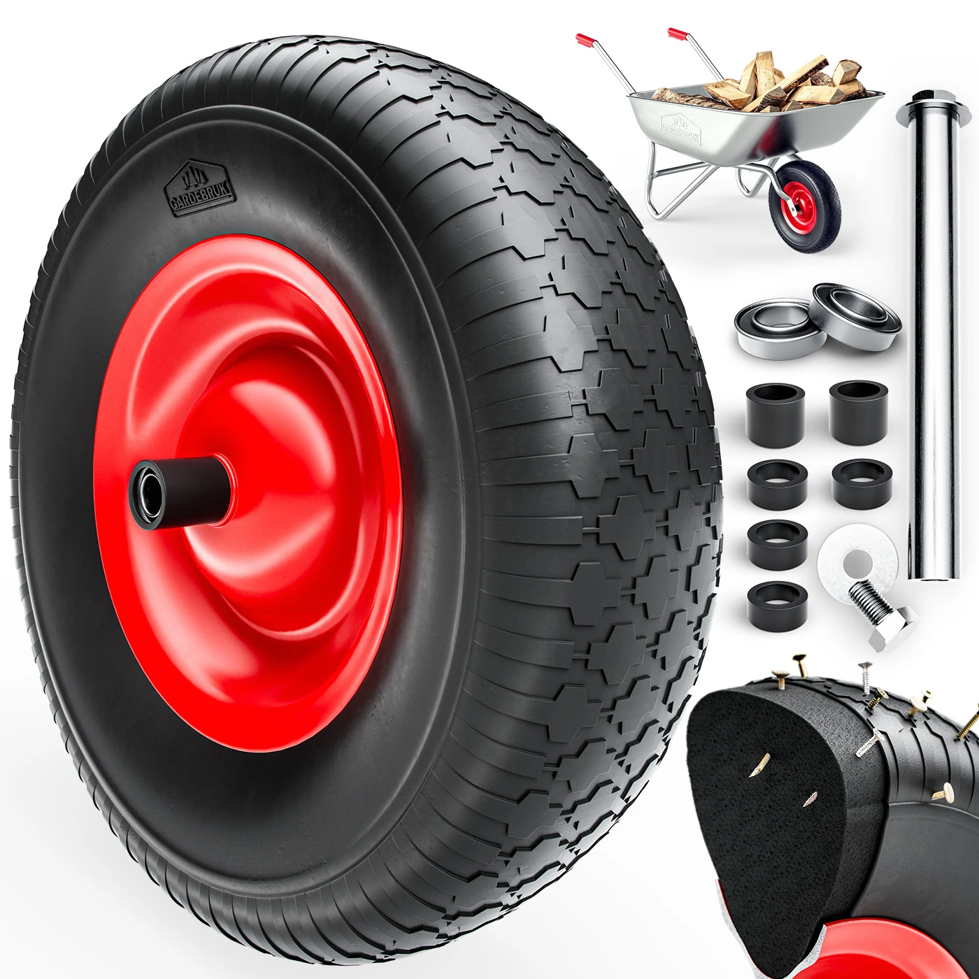 Sie sind es leid, andauernd Ihr Schubkarrenrad aufzupumpen oder gar austauschen zu mĂĽssen? Kein Problem mit diesem pannensicheren PU – Rad mit robuster Stahlfelge und Kugellager fĂĽr leichtes Fahren.