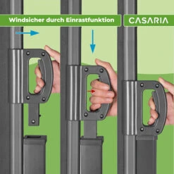 Das Modell verfĂŒgt am Griff ĂŒber eine Einrastfunktion, so ist die Markise auch bei Wind sicher verankert.