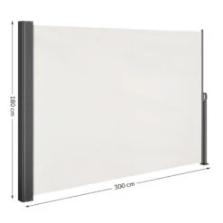 Die hochwertige Seitenmarkise Nosara von CasariaÂź schĂŒtzt optimal vor neugierigen Blicken. Die robuste Markisenkassette besteht aus pulverbeschichtetem Stahl und beinhaltet einen blickdichten Markisenstoff aus widerstandsfĂ€higem Polyester (180 g/mÂČ). Durch die PU-Beschichtung ist der Stoff wasserabweisend, wetterbestĂ€ndig und leicht zu reinigen. Windböen oder Sonneneinstrahlung werden ebenso zuverlĂ€ssig abgehalten.