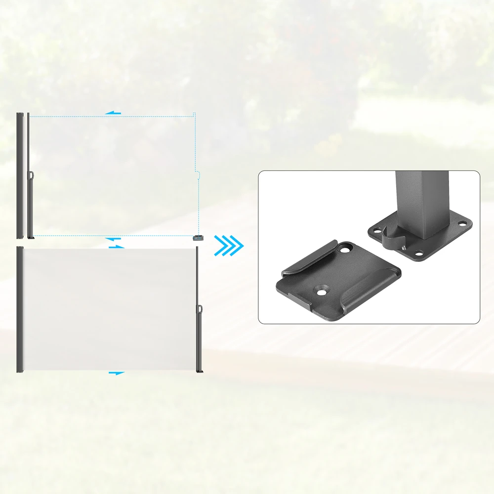 Die Markise hat eine verstellbare Wandbefestigung, womit das Gartenrollo vielseitig fĂŒr die verschiedensten Balkon- und Terrassentypen einsetzbar ist und sorgt fĂŒr ein Highlight in Ihrem Zuhause.