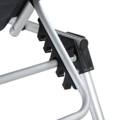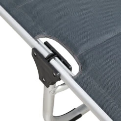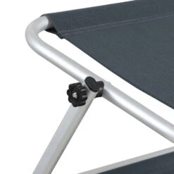 Zusammengeklappt ist die leichte Aluliege schnell und platzsparend verstaut. Die Tragegriffe ermöglichen einen einfachen Transport.