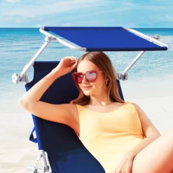 Die Liege mit Sonnendach hat eine 4-fach verstellbare Rückenlehne und einen einstellbaren Sonnenschutz für den Kopfbereich, damit Sie die Sonnenstrahlen in angenehmer Position genießen können.