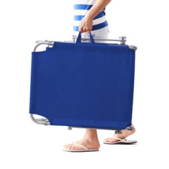 Der pulverbeschichtete Metallrahmen und der pflegeleichte und angenehme Nylonbezug, sorgen für eine widerstandsfähige und bis 150 kg belastbare Klappliege.