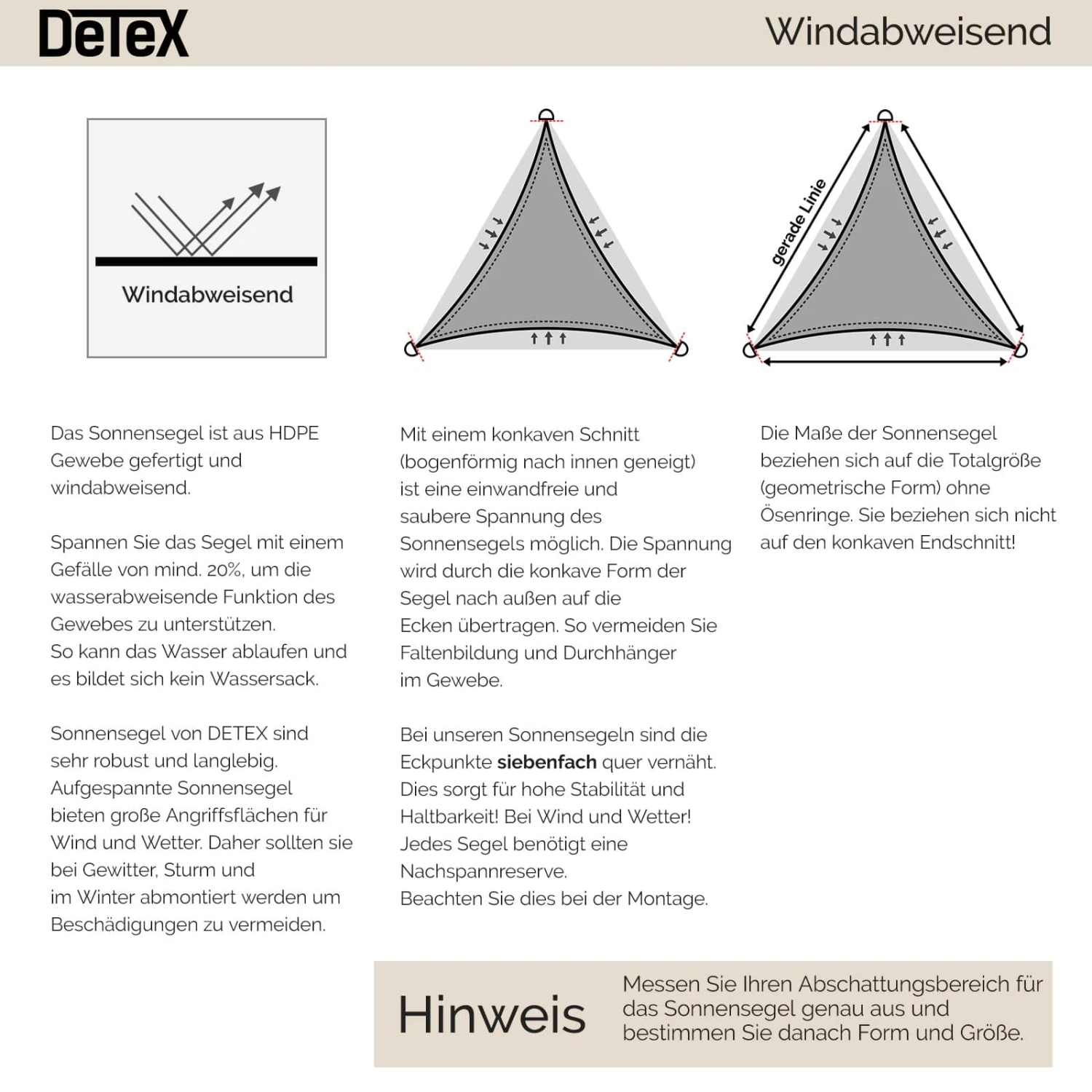 Unsere Sonnensegel bieten Ihnen den idealen Schutz vor Sonne, UV-Strahlen (bei Oxford-Gewebe), Wind und leichtem Regen. Unter den zur Auswahl stehenden verschiedenen Farben und Formen finden Sie ein passendes Sonnensegel fĂŒr Ihre Terrasse oder Ihren Balkon. WĂ€hlen Sie aus den Formen Dreieck, Quadrat oder Rechteck und den Farben Anthrazit, Creme oder Sand. Die Sonnensegel sind als Oxford- oder HDPE Gewebe erhĂ€ltlich.
