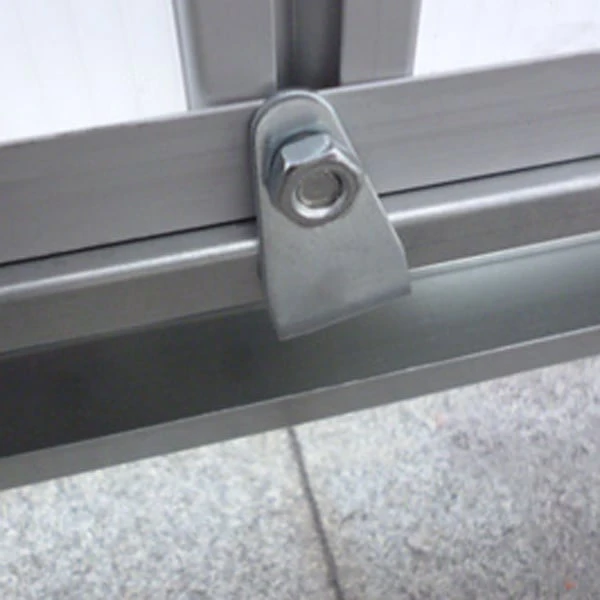 Montage: Der Rahmen wird mit Metallhaken am Boden befestigt. Das Gewächshaus und der Rahmen werden mit Winkel und Schrauben fest miteinander verbunden.