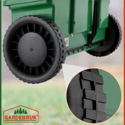 Das Gehäuse des Gartenstreuwagens besteht aus hochwertigem, bruchfestem Kunststoff und verfügt über eine korrosionsfeste, witterungsbeständige Walze.