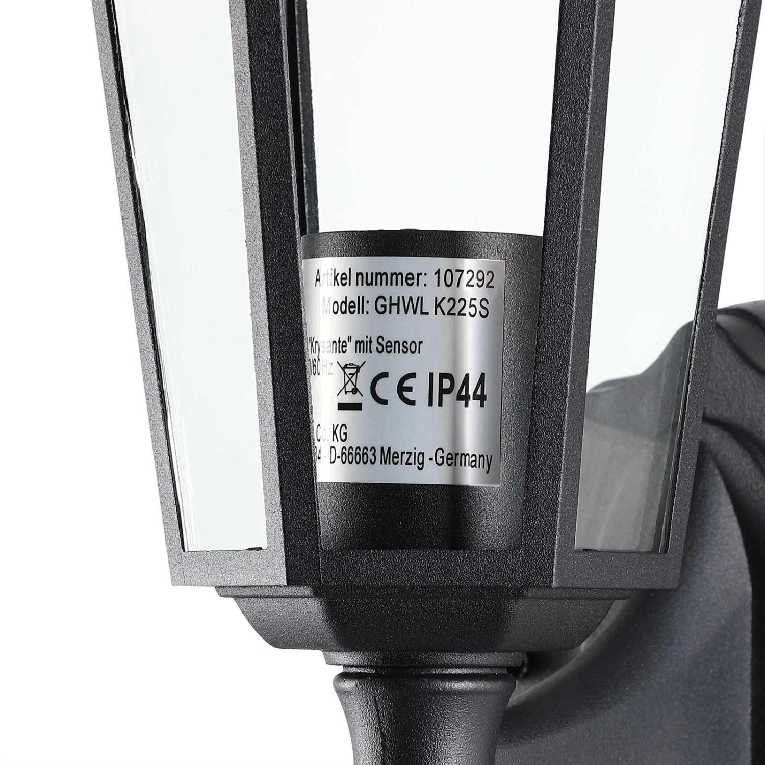 Die Außenlaternen aus Aluminium-Druckguss sind zusätzlich mit einem Bewegungssensor ausgestattet, der in der Helligkeitsempfindlichkeit und Leuchtdauer stufenlos einstellbar ist.