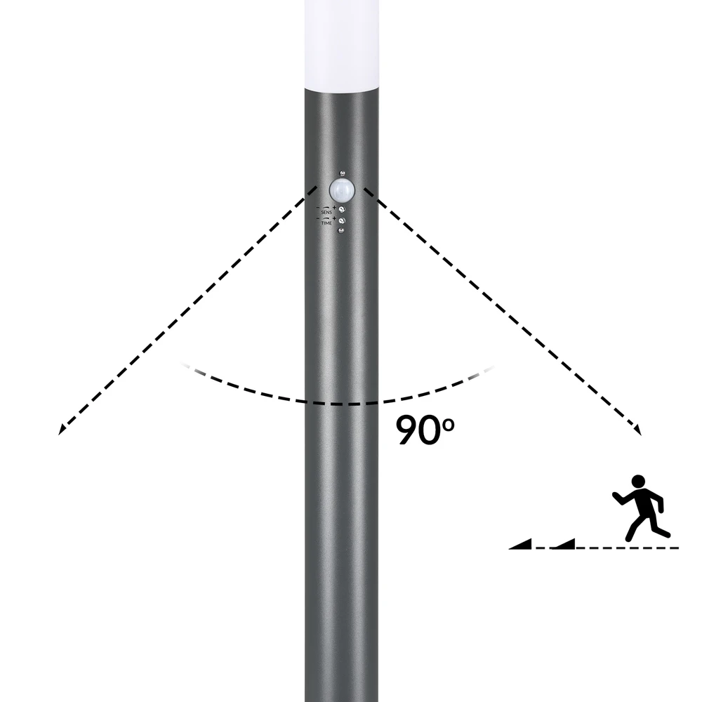 - Helligkeitsempfindlichkeit und Leuchtdauer am Bewegungssensor stufenlos einstellbar