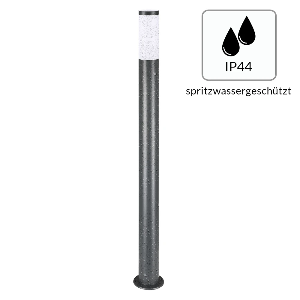 Die Außenleuchte aus Edelstahl ist spritzwassergeschützt (IP44) und wetterbeständig und damit ideal für den In-/und Outdoorbetrieb.